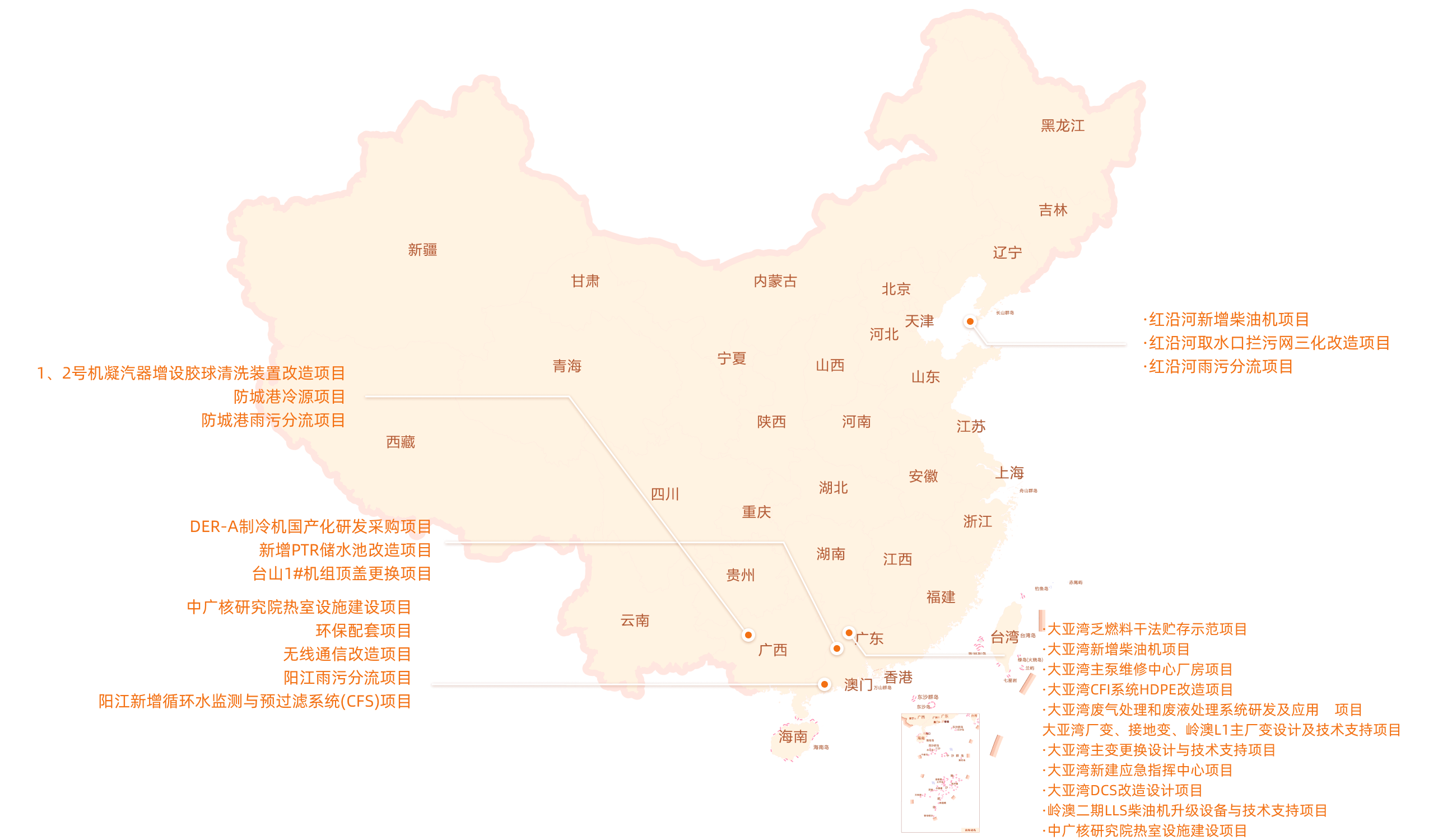 備注:此圖參考 審圖號GS(2021)5449號 自然資源部監制,僅用于中廣核旗下項目分布示意